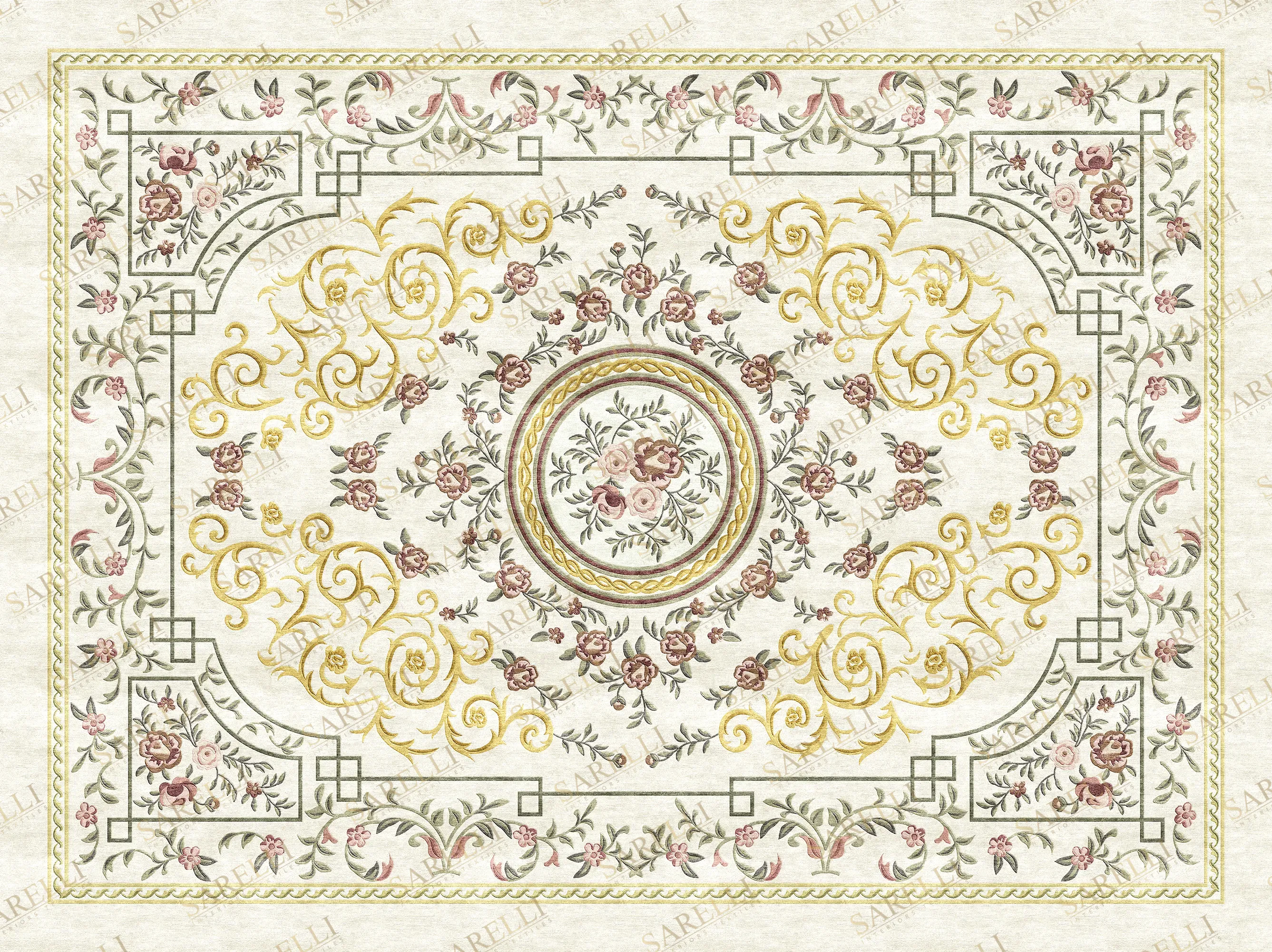 Perfect for classical palaces, the Ivory Petal Decor luxury viscose rug from Sarelli Interiors Textiles showcases a sophisticated central medallion with delicate floral bouquets encircled by a braided border, complemented by acanthus scrolls and geometric architectural elements that create perfect symmetry. The high and low processing method brings remarkable dimension to this handcrafted masterpiece, enhancing the premium vis... Read more